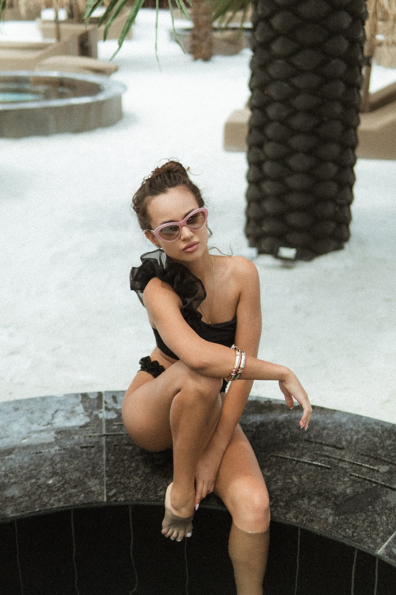 Musa Riccia Nera Set е за онези, които обичат да бъдат различни. Асиметричната горна част с ефектна тюлена къдрица създава артистичен силует, а долнището с къдри по линията на бедрата добавя фино, женствено излъчване. Това не е просто бански – това е модно изявление.